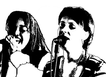 Poetry from Ann Harrison-Broninski featured as a central part of the Nunney Sun Dance event on Bank Holiday Monday 29 May 2000, and again in the Ghost Dance on 6 May 2001. She is pictured below with gospel singer Kizzy Morrell performing in the Sun Dance - Kizzy is on the left, Ann on the right.